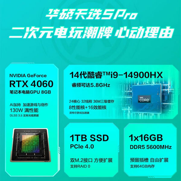 华硕 天选5 Pro 24核酷睿i9 16英寸电竞游戏本