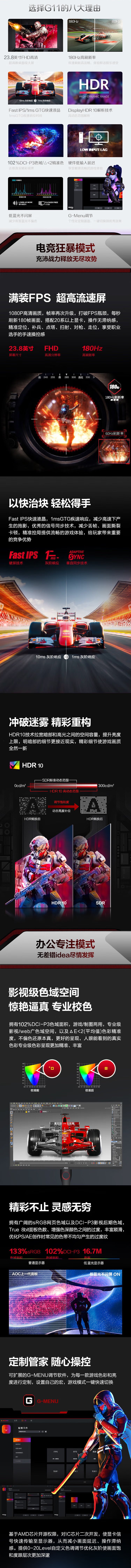 AOC 24G11E2 180Hz显示器23.8英寸电竞屏幕
